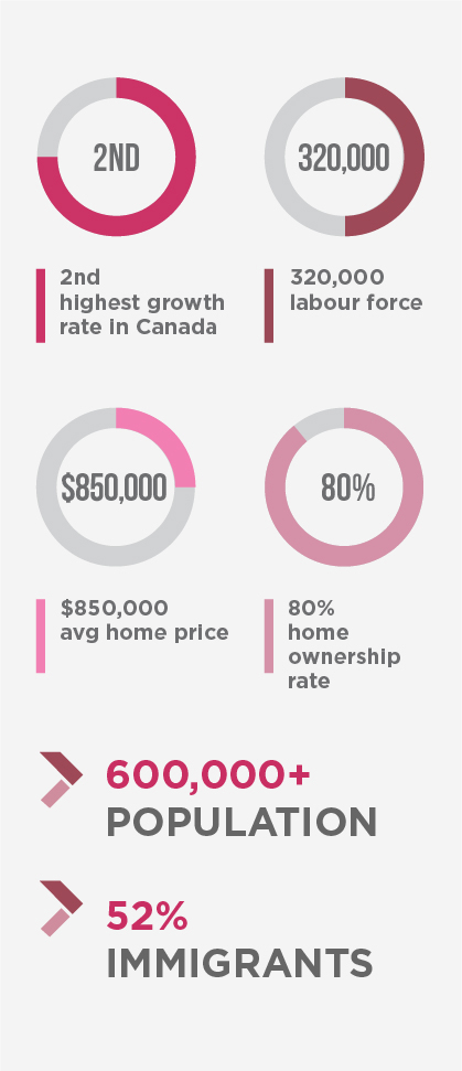 Brampton is the 3rd largest city in Ontario and 9th largest in Canada, with a population of over 600,000. Over the past 5 years, the population has increased by 13.3% per year.